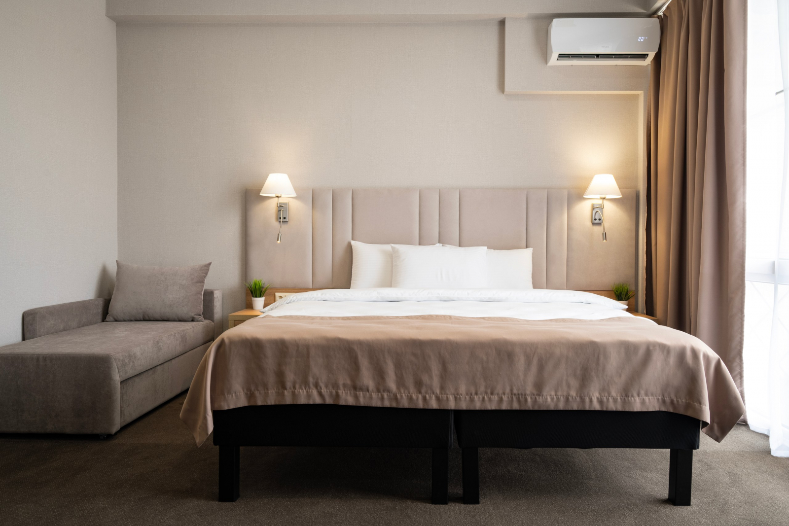 Площадь номера - 45-47 кв.м. 4 осн. места. 2 доп. места. Балкон. Мебель: вешалка, зеркало, кровать двуспальная (2), прикроватные тумбочки, стол, стулья, шкаф. Оборудование: сплит-система, телевизор, холодильник. Санузел: с душем, туалетные принадлежности, фен. Сервис: Wi-Fi бесплатно, смена полотенец (1 раз в 3 дня), смена постельного белья (1 раз в 5 дней), уборка номера (1 раз в 5 дней).